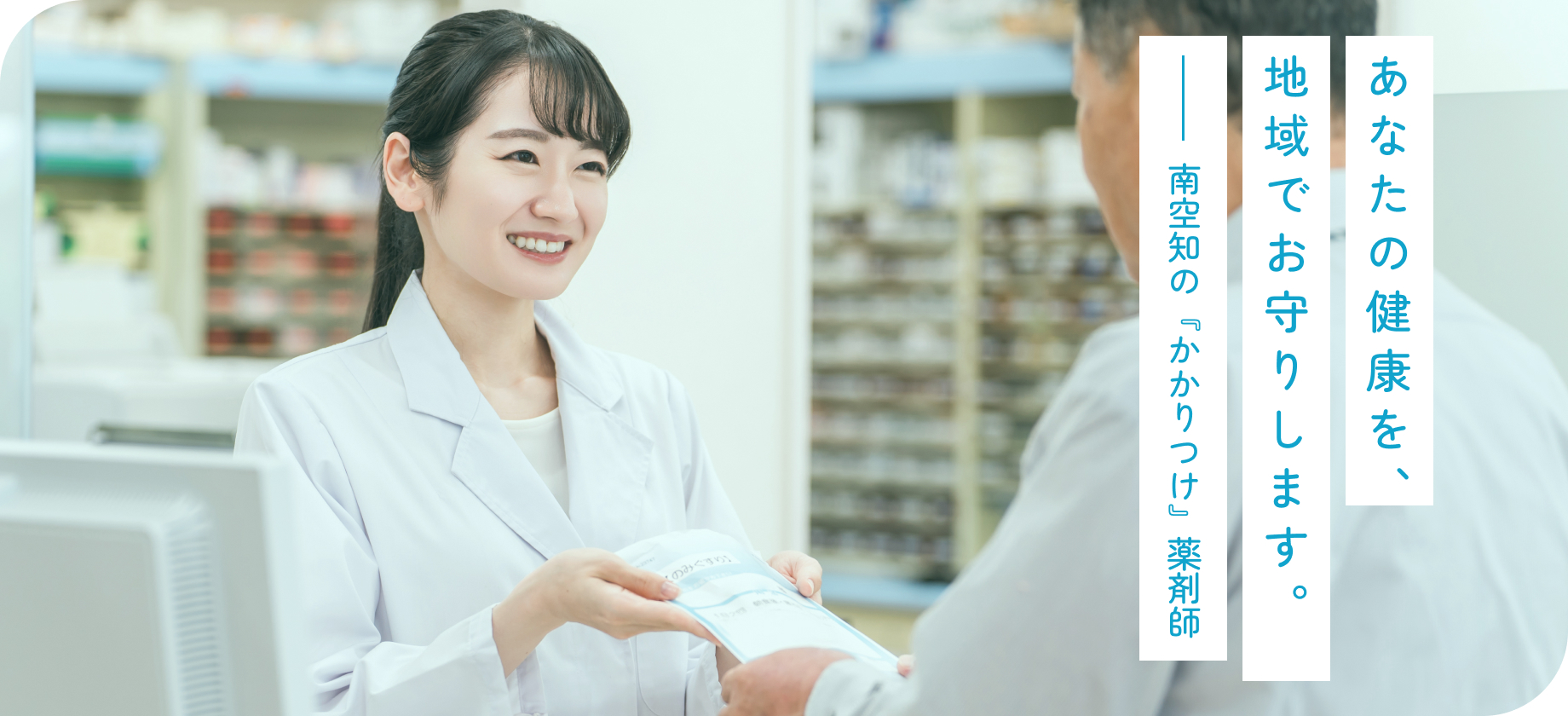 私たちは、南空知地域の皆さまの「かかりつけ薬剤師・薬局」として、安全で安心なサービスを提供し、健康な生活をサポートすることを使命として活動しております。